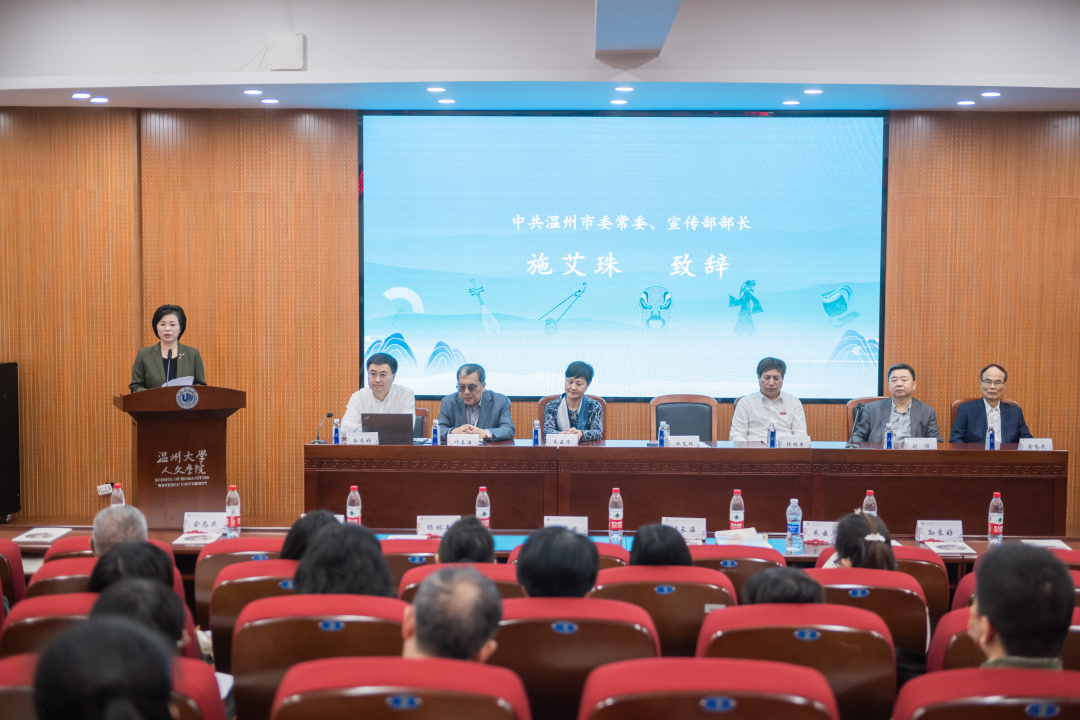 10月28日上午,2023年第十届南戏国际学术研讨会在澳门银河官网 人文学院隆重开幕。中共温州市委常委、宣传部部长施艾珠,澳门银河官网 纪委书记杨林书,温州市文化广电旅游局党组书记、局长朱云华等领导出席了开幕式。施艾珠部长在致辞中介绍了温州的城市特色,并结合2023年央视戏曲春晚,“戏从温州来”品牌打造等,提出要融汇更强的文化力量,让千年南戏经典挖得更深、立得更高、传得更远。