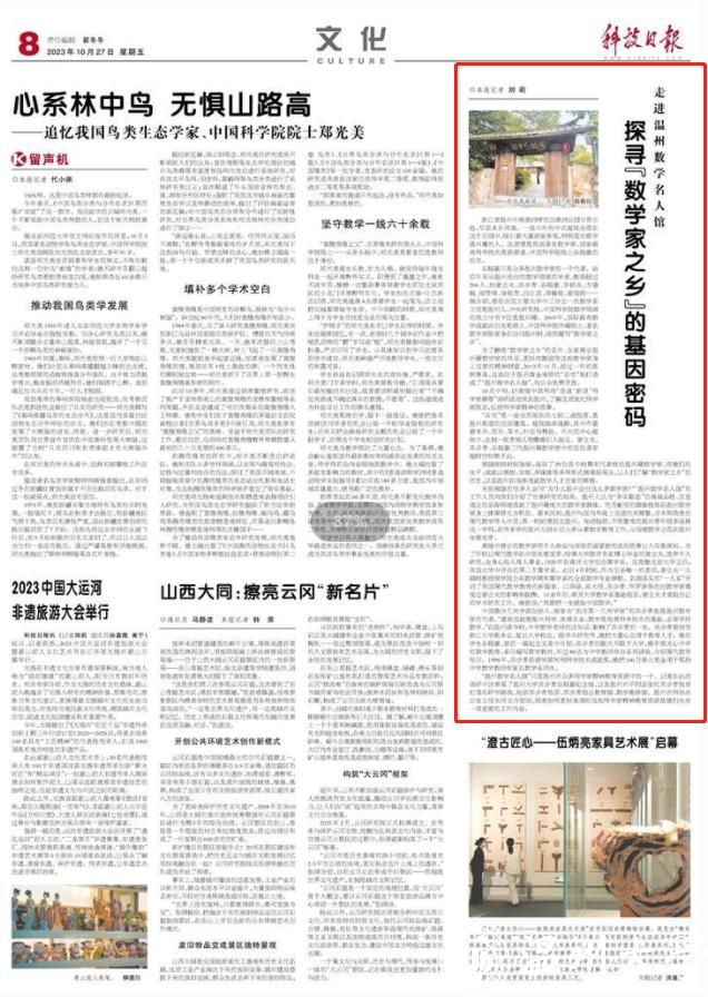 10月中旬,记者随中国科协“走进‘浙里’科学家群落”调研活动来到温州,了解这里依托科学家故居,弘扬科学家精神的故事。