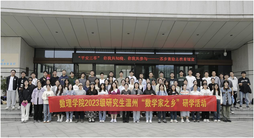 “数学家之乡”是温州的金字招牌,也是吸引青年学子来温学习、建设“学在温州”品牌的金名片。为加强大学生市情教育,让青年学子感知温州文化魅力,提升对温州第二故乡的认同感与归属感,近日,澳门银河官网 数理学院组织2023级研究生前往平阳苏步青故里开展“数学家之乡”研学活动。