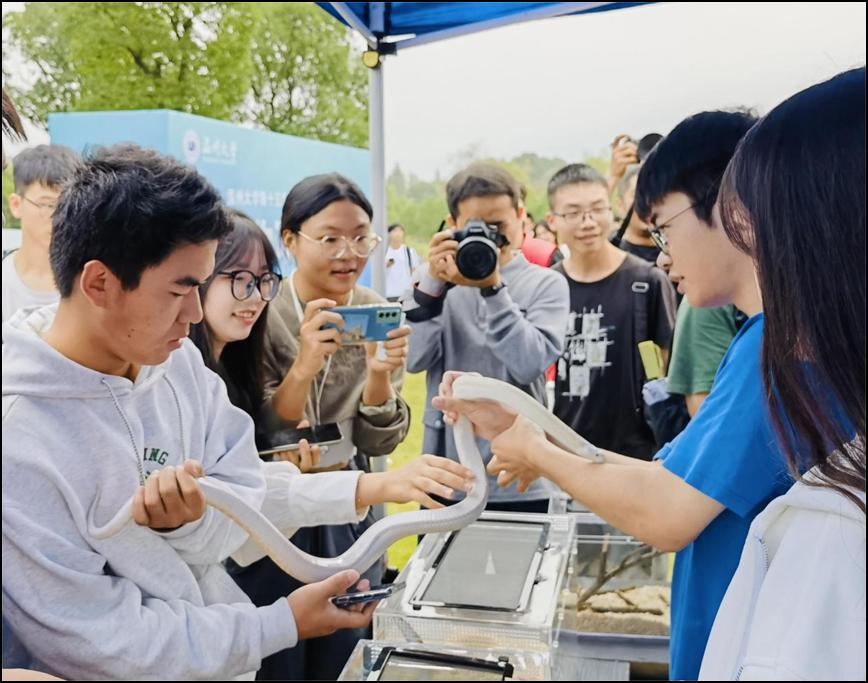 “这次活动真的很新奇,我是生态专业的同学,看到大家对两爬动物这么感兴趣,我对本专业的自豪感更强了!在这里我还体验了其他专业的摊位,也都很有趣,希望之后学院多多举办这样的活动!”一名现场同学说。