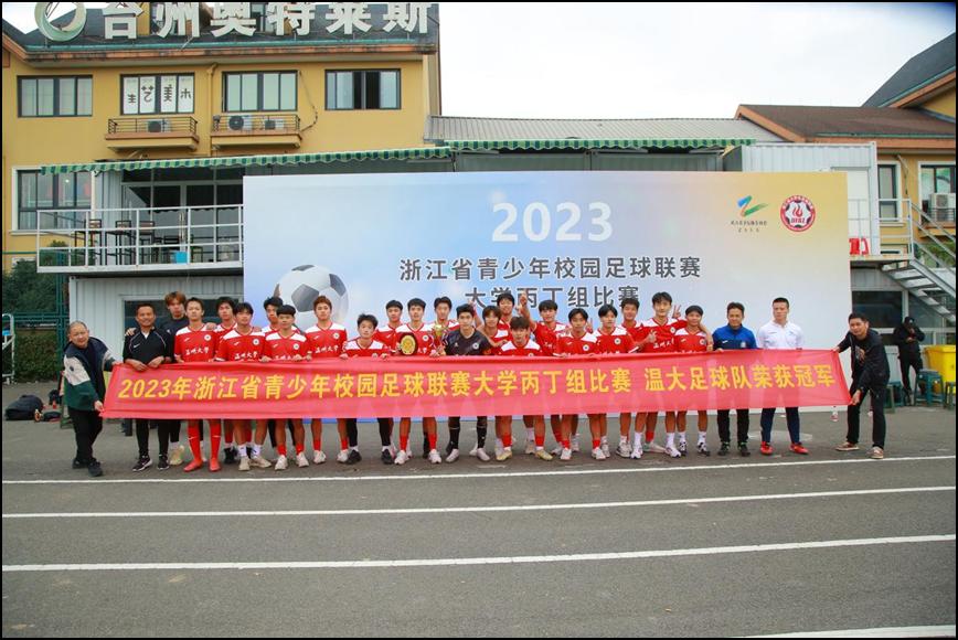 11月7日,2023浙江省青少年校园足球联赛大学丙丁组比赛在台州市黄岩区落下帷幕,澳门银河官网 鹿呦男子足球队奋力拼搏,以五战全胜的战绩勇夺男子丙组比赛冠军。体育与健康学院教练林辉老师荣获“优秀教练员”荣誉称号、队长潘柱豪获本次联赛唯一“最佳门将”称号、队员董文晖获“最佳射手”荣誉称号、队员叶旭凯、许晨、饶文韬、舒安获“优秀运动员”荣誉称号。