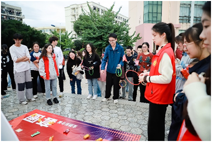 “原来还可以通过定向运动来巩固和学习金融知识,长知识啦!”活动现场,参赛同学们热情高涨、心情激动。“快快快快快快,我们要以最快的速度确定好反诈代言姿势”,“快来快来,急急急,其他队伍要追上我们啦”,他们在校园里飞速奔跑,展现出满满的青春活力和昂扬的精神风貌;“一二一,一二一,我们快到终点啦”,凭借着口令的指导,从最初的手忙脚乱中逐渐实现步调的整齐统一……20支参赛队伍现场展开比拼,团队通力合作,“沉浸式”体验趣味竞赛。活动现场还结合反诈防骗主题精心准备了小心“上钩”钓鱼游戏和套圈游戏,结束任务的选手可以凭借正确答题数量、填写问卷获得套圈次数或者钓鱼机会。