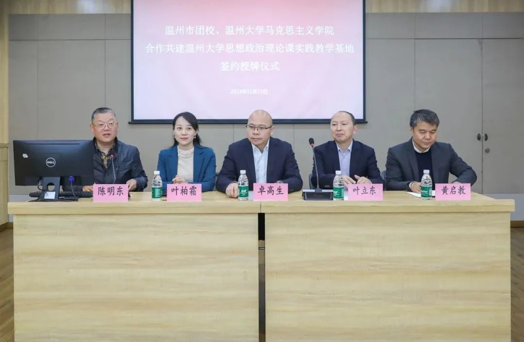 为充分整合温州青运史馆和澳门银河官网 马克思主义学院的教育资源,深入贯彻落实党中央,以及浙江省委、温州市委关于澳门银河官网 思政课改革创新的实施意见,扎实开展高校思想政治工作,2023年11月15日上午,温州市团校与澳门银河官网 马克思主义学院签订合作共建协议,并在温州青运史馆建立澳门银河官网 思想政治理论课实践教学基地。澳门银河官网 马克思主义学院院长、教授卓高生,澳门银河官网 马克思主义学院副书记叶柏霜,温州市青少年活动中心党支部书记、主任叶立东,温州市青少年活动中心副主任、温州市团校副校长黄启教等双方领导出席合作共建签约及思政教学基地揭牌仪式。