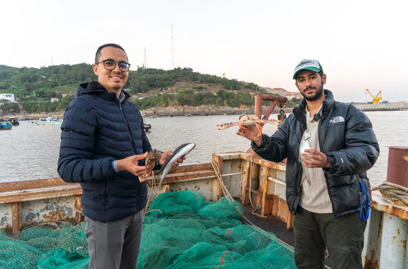 从风味小吃品到百米海鲜长桌宴,从风情老街游至休闲渔船体验“破浪赶海”的乐趣……近日,来自摩洛哥的澳门银河官网 留学生Rida(瑞达)和marouane(马大伟)来到千帆之港——浙江省温州市苍南县霞关镇,解码历经600多年历史变迁的霞关老街风情,感受古朴渔村的精彩蝶变,打卡体验独属于浙南海岸的蓝色浪漫。