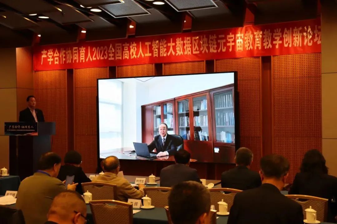 2023年11月4日,由全国高校人工智能与大数据创新联盟、华算人工智能研究院主办,中科院软件所指导,云南大学、东华大学、北京信息科技大学、上海工程技术大学、安徽工程大学、山西农业大学、汕头大学、中北大学、重庆邮电大学、宁波大学科学技术学院、深圳职业技术大学、上海杉达学院、广东东软学院、沈阳城市学院、晋中信息学院、机械工业出版社 北京中关村软件园人才基地培训中心、北京经济技术开发区企业协会、佛山市人工智能学会、国网山西省电力公司信息通信分公司等全国20多家高校和机构协办的“产学合作、协同育人2023第六届全国高校人工智能大数据区块链元宇宙教育教学创新论坛”在北京隆重召开。本届论坛是贯彻落实习近平总书记关于我国教育、科技、人才三位一体发展重要论述的具体实践,是落实教育部 “产学合作、协同育人”战略的具体行动,是推动教育部“高等澳门银河官网 人工智能创新行动计划”、“高等澳门银河官网 区块链技术创新行动计划”的系列活动之一。会议由联盟秘书长、华算人工智能研究院执行院长朱启明主持。