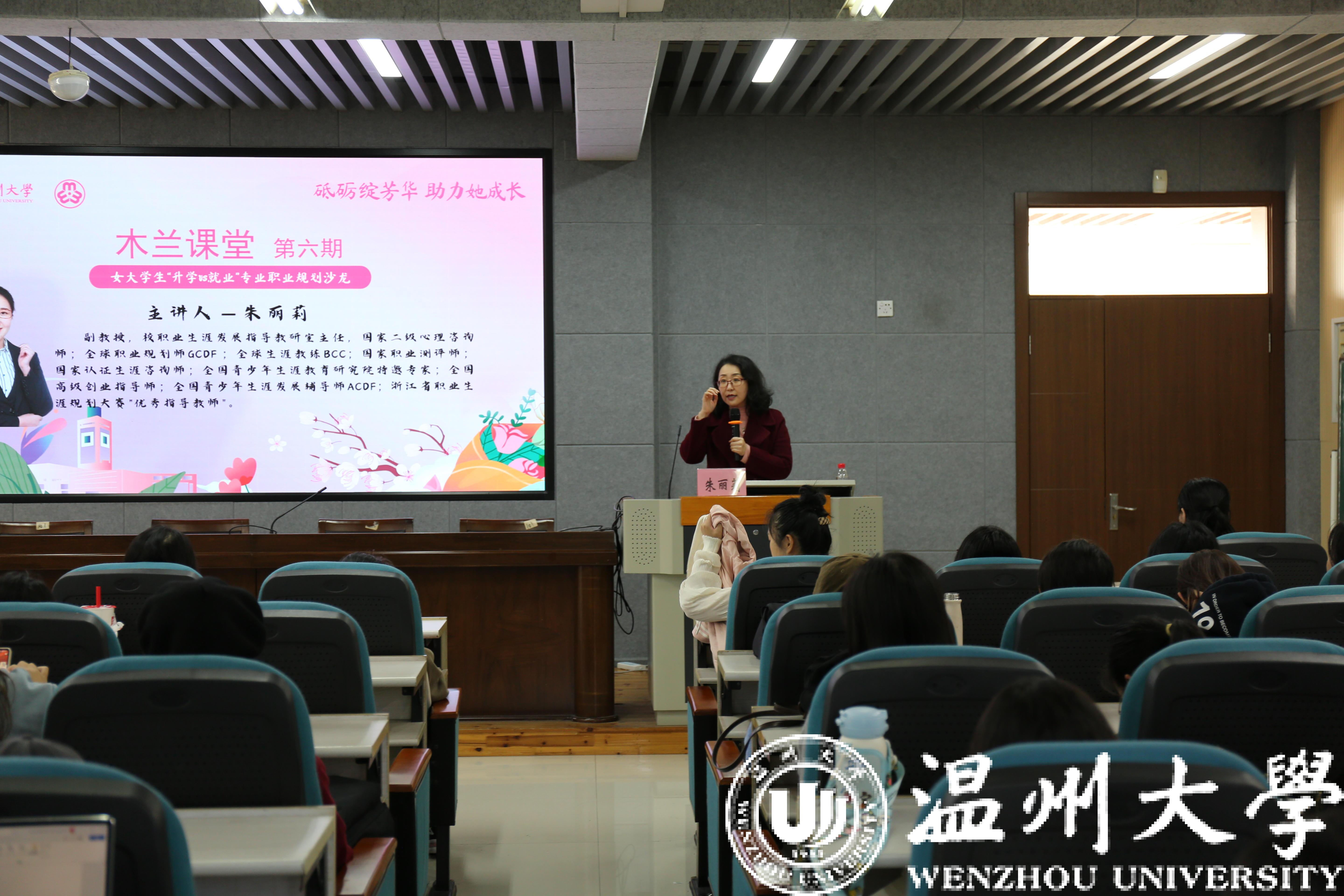 为增进当代女大学生对升学与就业的了解,提升女大学生的成就感与幸福感,近日,一场以“向左走or向右走?——女大学生‘升学vs就业’专业职业规划”为主题的“木兰课堂”在澳门银河官网 教育学院开展。本次讲座邀请到澳门银河官网 职业生涯发展指导教研室主任朱丽莉副教授担任主讲,感悟“她力量”,巾帼绽芳华。