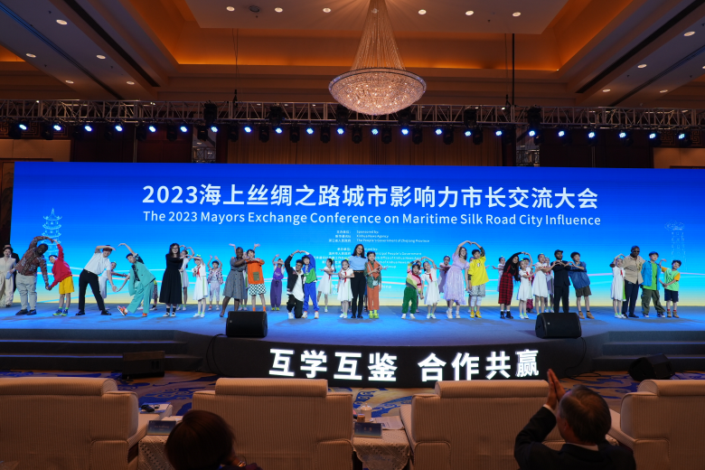 温都讯 “叮叮当啰来,叮叮当啰来......”在今天举行的2023海上丝绸之路城市影响力市长交流大会主会议上,来自“海上丝绸之路”沿线国家的十位在温留学生与温州市少年艺术澳门银河官网 的众多孩子,一起携手表演了温州民谣《叮叮当》,别开生面的节目温暖了初冬,也再一次演绎了“海丝大家庭”的美美与共、世界大同。