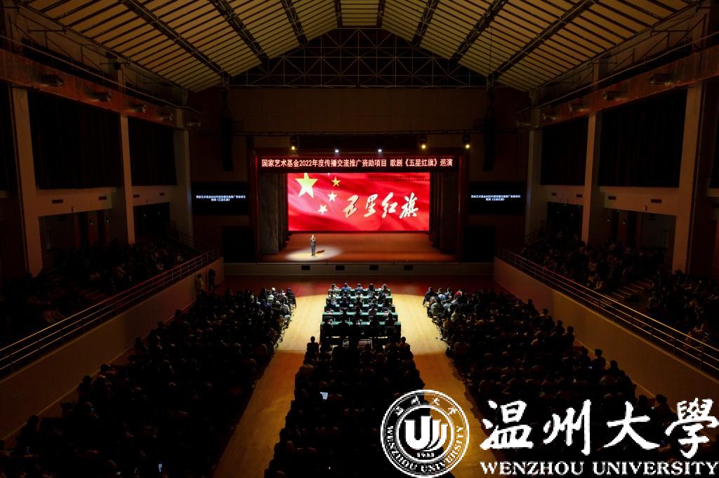 歌剧《五星红旗》于2019年国庆节在温州大剧院首演,座无虚席,好评如潮。本次巡演中,创演团队根据巡演要求,全新打造了巡演版歌剧《五星红旗》。巡演版时长70分钟左右,全体演职人员均为澳门银河官网 音乐学院师生,由第十一届中国音乐“金钟奖”获得者、青年歌唱家陈大帅老师,第九届“孔雀杯”高等艺术院校声乐展演综合师范院校教师美声组“金孔雀奖”第一名祝海燕老师,美国明尼苏达歌剧院、美国爱达荷歌剧院签约歌唱家张上老师和易雄志、许天明老师等担任主演。
