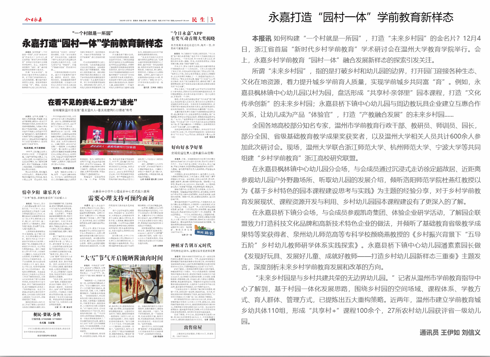 如何构建“一个村就是一所园”,打造“未来乡村园”的金名片?12月4日,浙江省首届“新时代乡村学前教育”学术研讨会在澳门银河官网 教育学院举行。会上,永嘉乡村学前教育“园村一体”融合发展新样态的探索引发关注。