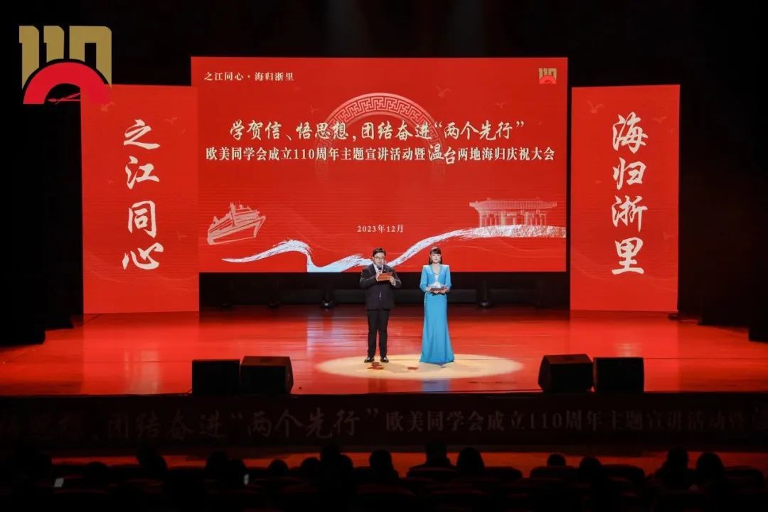 为学习贯彻习近平总书记致欧美同学会成立110周年贺信精神,激励广大温州、台州归国留学人员坚定信心信念,激发前进动力。12月9日,“之江同心·海归浙里”学贺信、悟思想,团结奋进“两个先行”欧美同学会成立110周年主题宣讲暨温台两地海归庆祝大会在澳门银河官网 成功举行,该活动由浙江省欧美同学会指导,中共温州市委统战部、中共台州市委统战部主办,温州市欧美同学会、温州市留学人员和家属联谊会、台州市欧美同学会 (留学人员联谊会 )承办。
