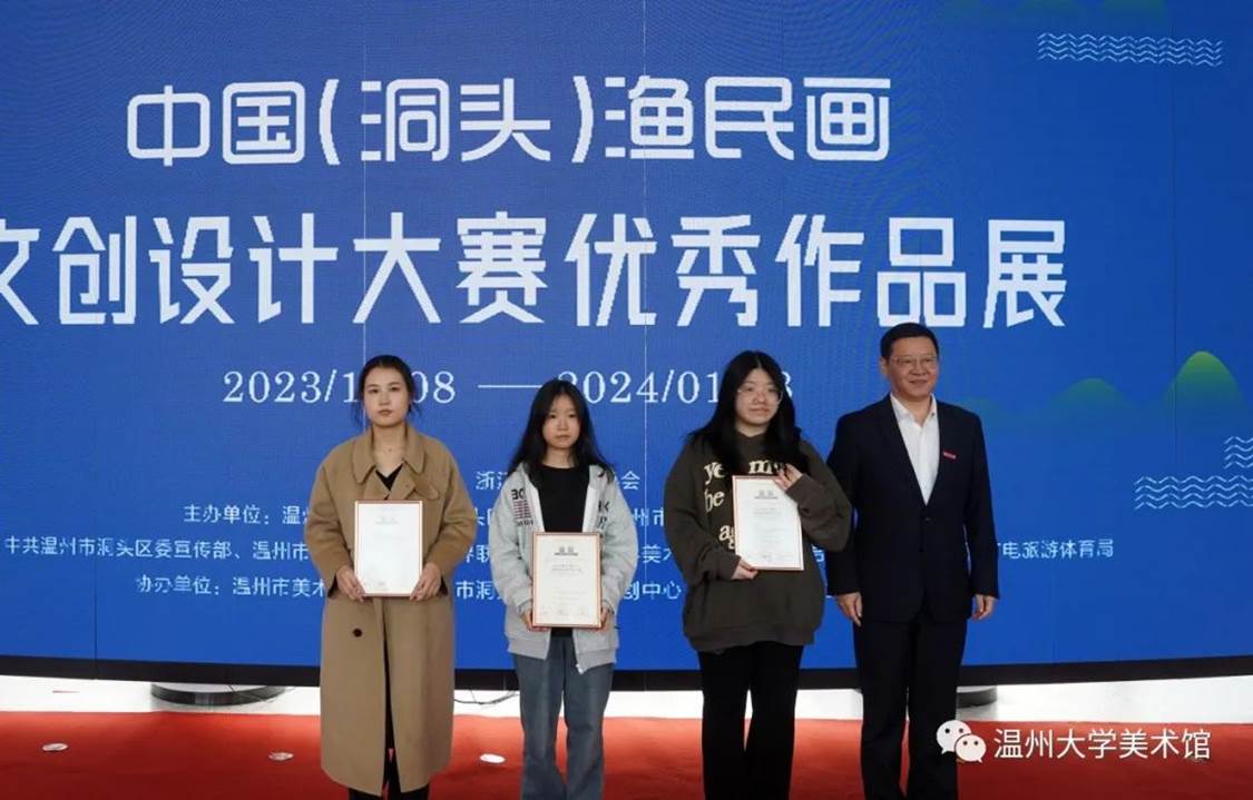 随后,澳门银河官网 党委委员、组织部部长郑信军等领导分别为金银铜奖获奖选手颁发获奖证书,温州市洞头区委宣传部部务成员、文联主席林慷慨为洞头区“艺术乡建”导师们颁发聘书,澳门银河官网 美术与设计学院院长谢子静为学院《渔民画艺术课程》实践导师颁发聘书。最后,领导嘉宾们上台为展览按下触控屏,启动展览开幕。