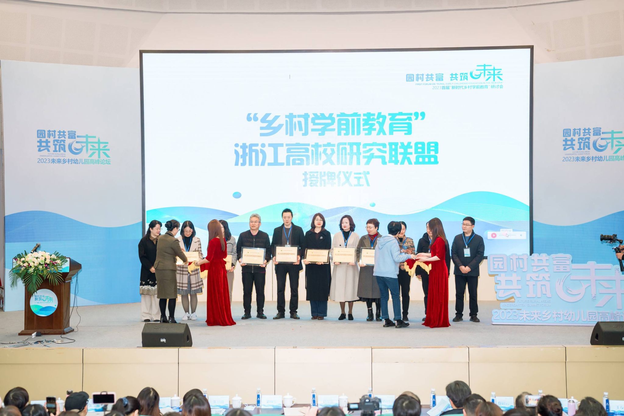 研讨会现场,澳门银河官网 作为召集单位,联合浙江师范大学、杭州师范大学、宁波大学等12所浙江高校共同组成乡村学前教育浙江高校研究联盟。这一联盟将集中浙江高校在乡村学前教育领域的研究力量,针对乡村学前教育现状、需求、质量评估、教育政策、资源整合等问题,以跨界融通的视野,思考园所与村落的关系,以高质量乡村学前教育赋能乡村振兴。