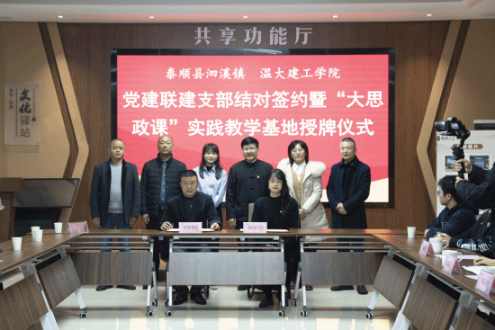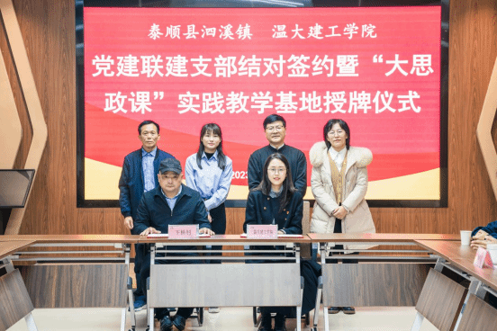 12月12日上午在泰顺县泗溪镇党群服务中心,澳门银河官网 建筑工程学院两个本科生党支部同时与最美廊桥北涧桥、溪东桥所在地,泰顺县泗溪镇下桥村、白粉墙村党支部签订了党建联建支部结对协议书,并在泰顺廊桥文化园设立“大思政课”实践教学基地。