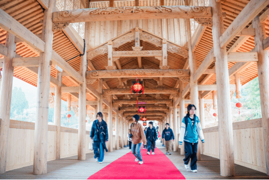 随后,学院师生参加了在泗溪镇横坑村举行的德贤广贤廊桥竣工庆典活动,沉浸式体验了世界非物质文化遗产中国木拱桥传统营造技艺。