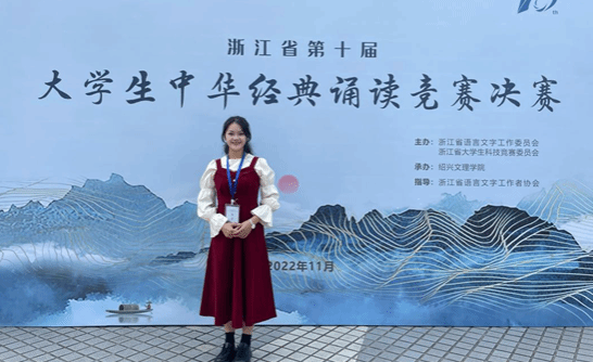 为了提升自己的专业素养,沈馨怡除了阅读近100本的国学书籍,还踊跃参与了国学相关的多项比赛并取得了成绩。如在第五届中华经典诵写讲大赛“诗教中国”诗词讲解大赛荣获三等奖,在浙江省第十一届诗词讲解竞赛本科组一等奖。同时,进入温州浙南文化国学馆开展实习,跟随国学老师教授孩子们国学知识,一起写毛笔字,学国学知识,讲国学故事,带领孩子们感受国学的魅力……“我希望能成为一名少儿国学教师。”沈馨怡说,她立志用国学经典浇灌学生心灵之花,去探寻中华文化瑰宝,领略华夏文明。