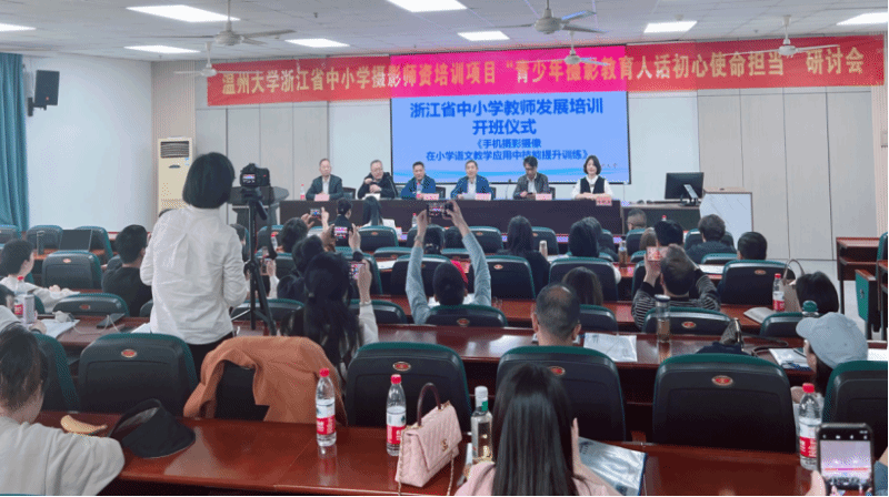 12月8日,“以摄影为矩 燃教育之火”胡铸鑫摄影艺术创作研讨会暨澳门银河官网 青少年摄影美育研究中心(筹)申办座谈会在澳门银河官网 教育学院召开。来自全国青少年摄影教育指导委、澳门银河官网 、温州商学院专家教授,温州市瓯海区中小学(幼儿园)校长代表和来自全省各地的浙江省中小学摄影教师专业发展培训班的教师代表40余人参加研讨会。