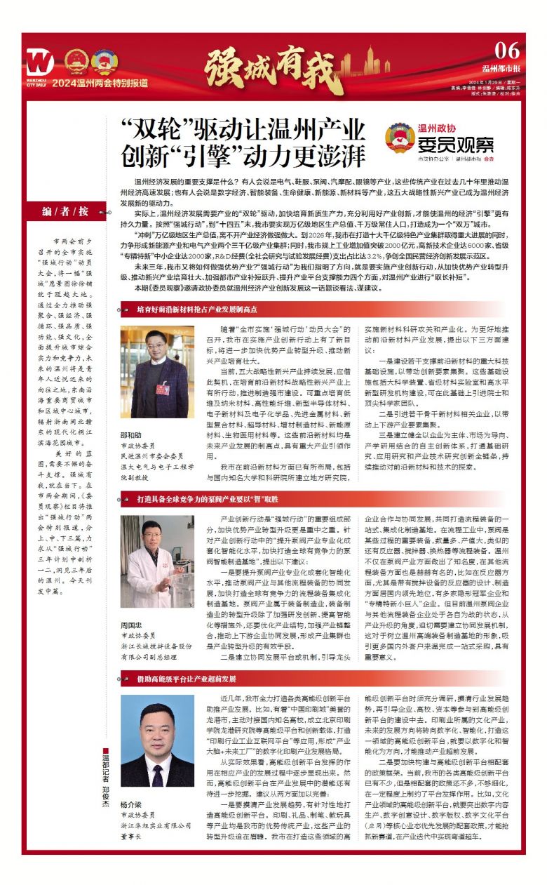 本期《委员观察》邀请政协委员就温州经济产业创新发展这一话题谈看法、谋建议。