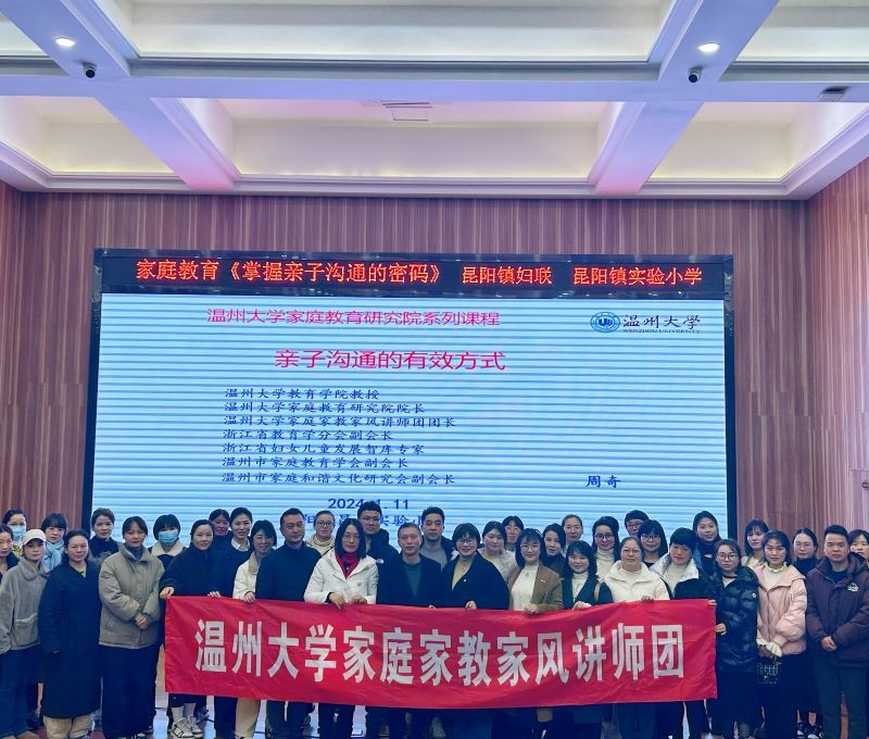 2024年1月11日晚,平阳县昆阳镇实验小学邀请澳门银河官网 教育学院教育学系党支部书记、澳门银河官网 家庭教育研究院巾帼文明岗负责人、澳门银河官网 家庭家教家风讲师团团长,温州市家庭教育学会副会长周奇教授做《亲子沟通的有效方式》专题讲座。