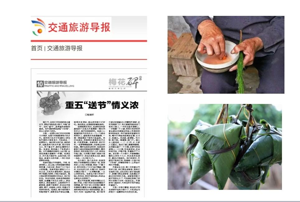 端午那天,煮了四个多小时的粽子一出锅,粽香就穿过田埂越过小河,和外婆家满满一大篮子的“子孙粽”约会去了。外婆端着一个小碗,蘸着雄黄酒,在国华额头画了一个大圈。嘴中还不停地用闽南话念着:“五月五,是重五。划龙船,敲锣鼓。吃大粽,粽子香。雄黄酒,洒门户。娒儿头上画老虎,一,二,三,四,五,大家人过重五。”第一个大粽,外婆蘸着红糖先给外孙,再给女儿,最后才是自己吃。