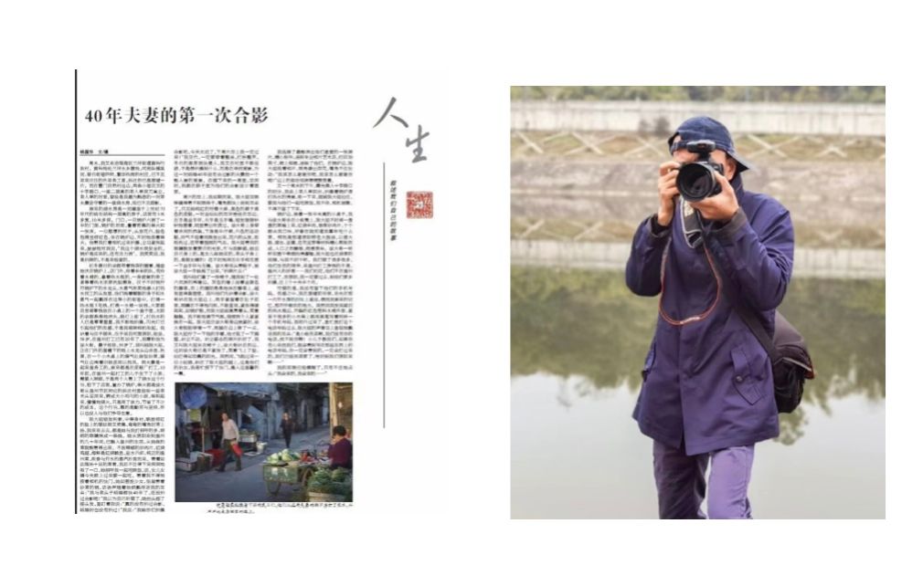 国华用镜头娇宠爱妻,也用《40年夫妻的第一次合影》记录了别人家的“红宝石”之爱。在温州瓯海区三垟街道黄屿村一对来自河南信阳的中年夫妇,经营一个用劈柴烧水的锅炉房,五毛一瓶一元一桶为周围民工提供热水。国华听说她们夫妇结婚四十年没拍过合照,就欣然抽了一个周六帮他们完成心愿。国华原味记录了40年一遇的真爱画面:“陈大姐双眼眯缝得看不到眼珠子,嘴角都快上扬到耳朵了,只见她纯红的对襟大褂,黑色的裤子黑色的皮鞋,一对金灿灿的耳环垂挂在耳边,左手是金手环,右手是玉手镯,短发服服帖帖地盖着,明显看出吹烫过。徐大哥上身穿着休闲的西装,下身是牛仔裤,白色的运动鞋,帅气不经意间焕发出来,花白的头发,刚刚洗过,还带着湿润的气态。陈大姐看我的眼睛散发着赞许的光彩,忙与我解惑,她说自己身上的,是女儿给她买的,老头子身上的,是借女婿的。还不时地用左右手相互搓一下金手环与玉镯。”“我不断地调节气氛,指挥两个人紧紧挨在一起。陈大姐往徐大哥身边挨紧时,徐大哥轻轻哆嗦一下,两脚往边上移了一点,陈大姐拧了一下他的手臂,他才挺了一下胸膛,站立不动。”
