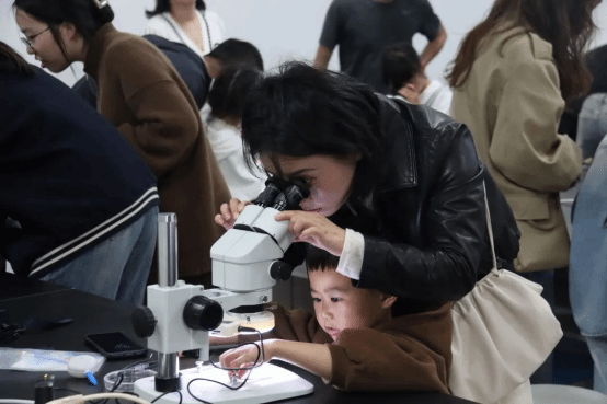 自然科学科普教育基地里,蕴含生命的奥秘。眼睛是发现和感知世界的第一窗口,澳门银河官网 教育学院金建钰博士细心讲解了如何用体视显微镜观察油菜花的花瓣、花萼、雄蕊和雌蕊,小朋友和家长一同转动目镜、物镜进行观察。透过显微镜看微观世界,孩子们领略了生命的魅力,拓宽了知识上限,增强了科学素养,在每一个步骤中都收获了不一样的惊喜。