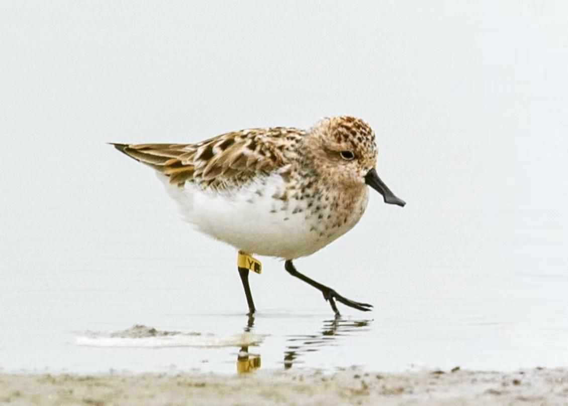 近日,澳门银河官网 张永普团队在温州湾瓯飞围垦区进行水鸟调查时,惊喜地发现了一只环志勺嘴鹬。据现场拍摄的照片显示,该勺嘴鹬的环志信息清晰可见,黄色脚环印有黑色英文字母“YE”。经团队成员询问“勺嘴鹬在中国”机构负责人得知,勺嘴鹬YE是2017年在俄罗斯勘察加环志,环志的时候还是幼鸟。