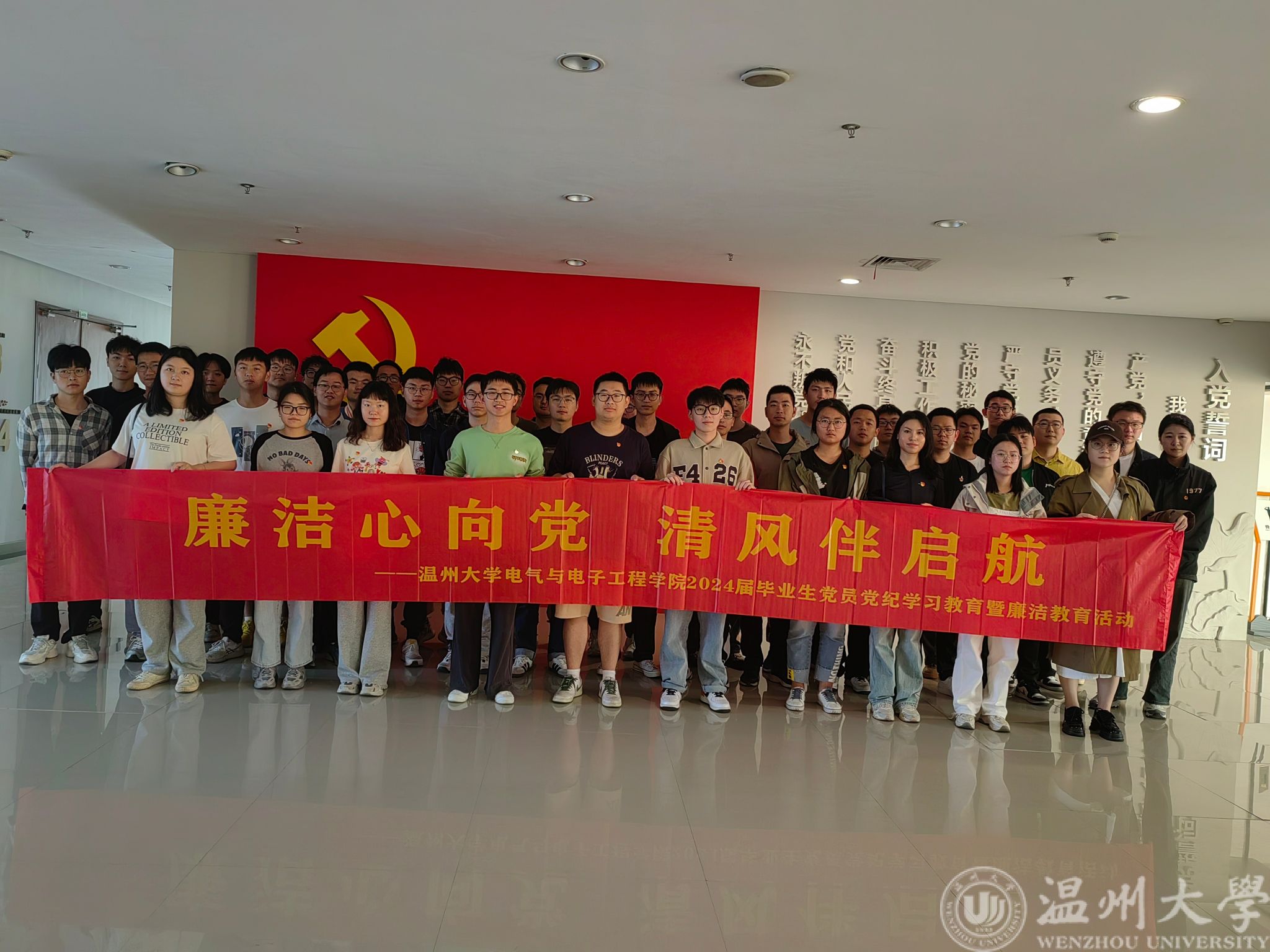 在毕业生们即将踏上人生新的征程之际,5月10日下午,澳门银河官网 电气与电子工程学院党委组织毕业生党员赴温州市瓯海区廉政教育基地开展毕业生党员党纪学习教育暨廉洁教育主题党日活动,旨在引导青年学生坚定理想信念,增强廉洁意识,扎实走好迈向社会的第一步。