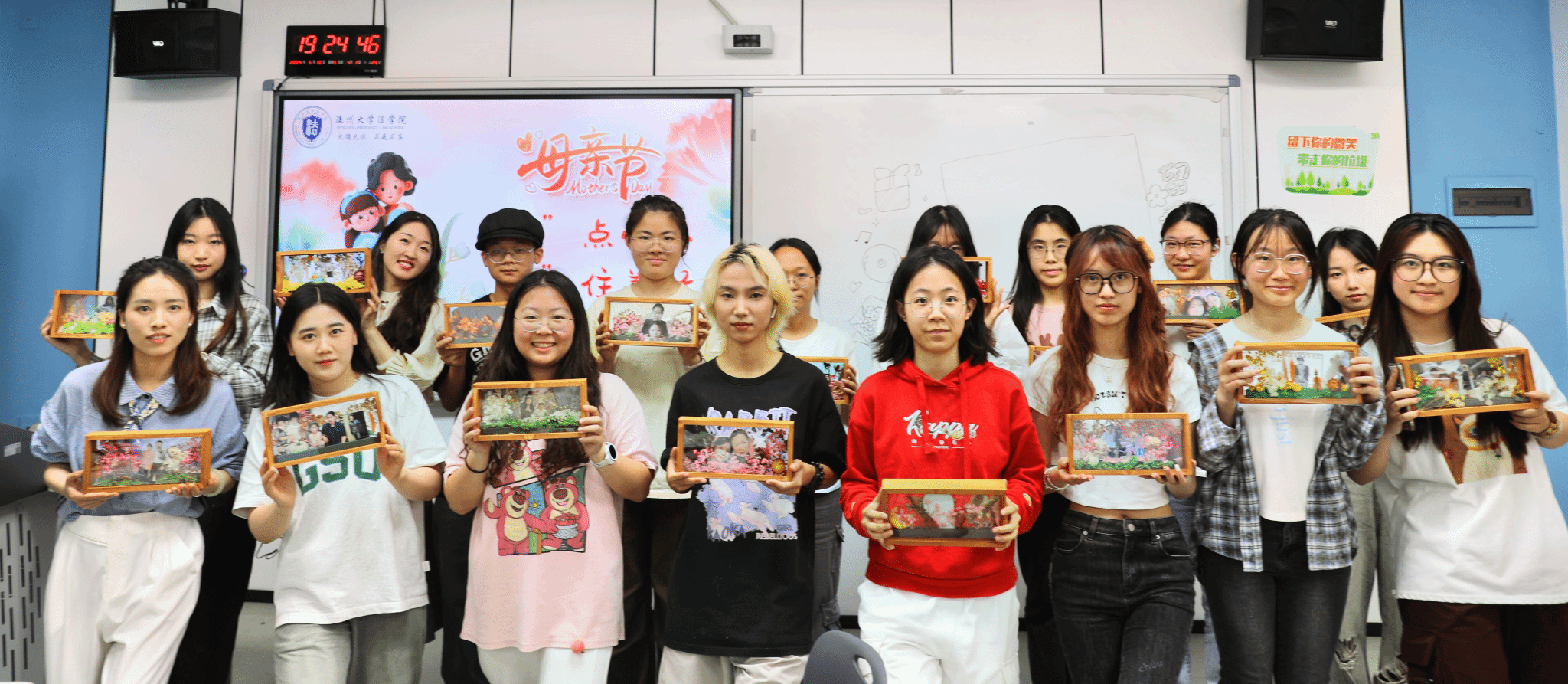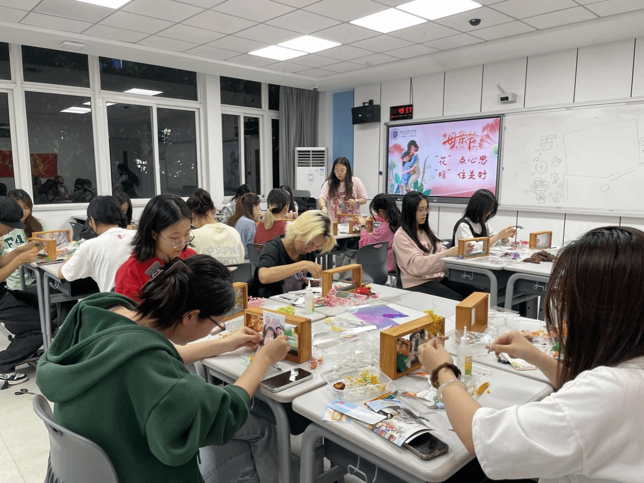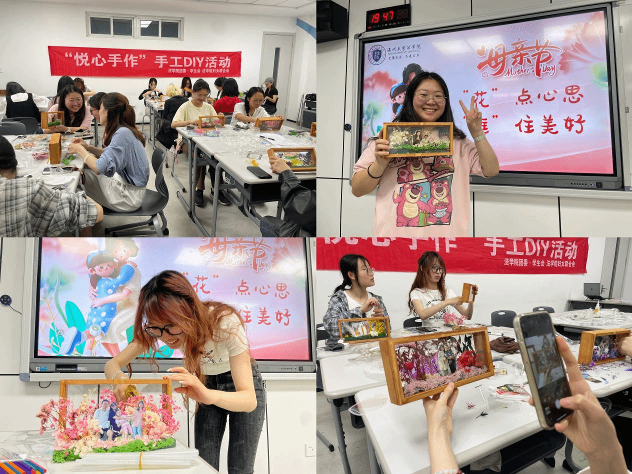 五月浅夏,岁月安然。这是一个深情的季节,所有与爱有关的事物都在发芽。母亲节,亦在这温暖的月份里欣然而至。2024年母亲节来临之际,澳门银河官网 法学院开展了“‘花’点心思,‘框’住美好”DIY活动。伴着悠扬的乐曲,同学们纷纷拿起面前的材料进行创作。
