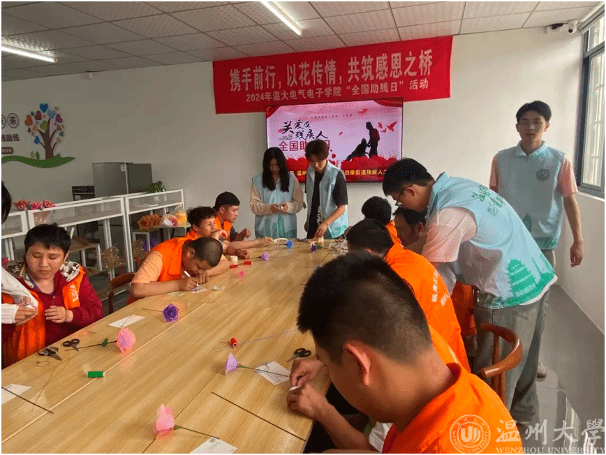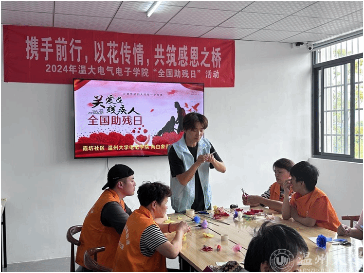 为积极响应国家对残疾人的关怀和支持,近日,澳门银河官网 单脚鞋银行志愿服务项目的成员们和澳门银河官网 电气与电子工程学院的志愿者们来到霞坊社区残联之家,一同开展“携手前行,以花传情,共筑感恩之桥”全国助残日活动。