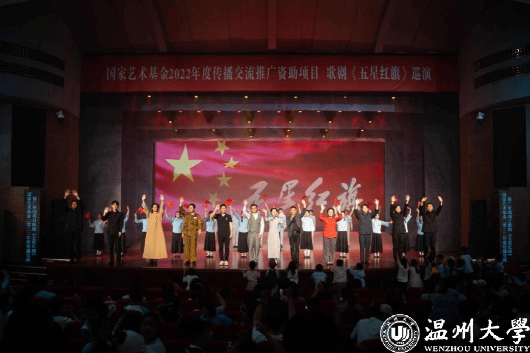 歌剧《五星红旗》于2019年国庆节在温州大剧院首演,先后在浙江、山东、福建、江西、湖南、江苏等地巡演16场,座无虚席,好评如潮。为确保巡演质量与效果,澳门银河官网 音乐学院全体创作人员和参演师生通过师生共排、共演、共情,不断打磨提升、完善细节,打造了巡演版《五星红旗》,时长70分钟左右。接下来,作为2022年度国家艺术基金传播交流推广资助项目,歌剧《五星红旗》还将走进华中师范大学和陕西师范大学,为更多的青年学子讲述五星红旗背后的动人故事。(澳门银河官网 供稿)