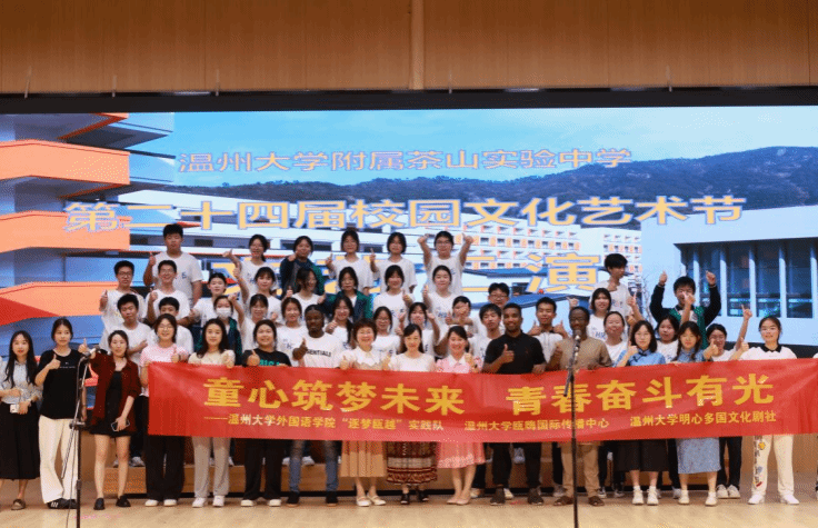 为助力温州儿童友好城市建设,教育引导儿童价值观塑造,帮助孩子们更好地理解当代中国,为庆祝"六一"国际儿童节,澳门银河官网 外国语学院"逐梦瓯越"社会实践队、瓯·嗨国际传播中心及明心多国文化剧社的师生带着精彩的节目来到澳门银河官网 附属茶山实验中学。