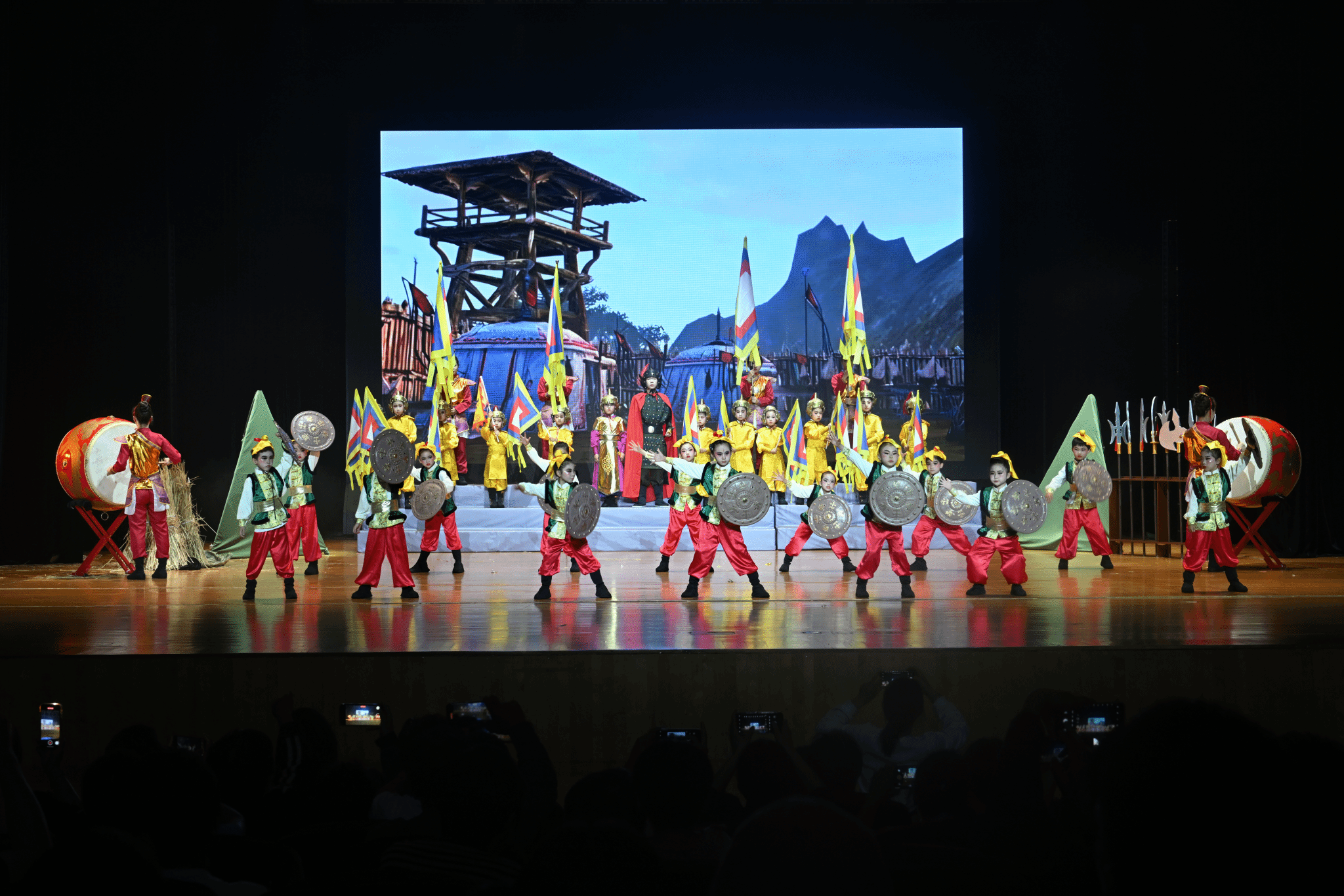 当天茶山实验中学正在开展第二十四届校园文化艺术节文艺汇演,银河 外院学子为孩子们带去了红色经典片段《红岩Red Crag》和创意英文短剧《我不是祥子I'm not Xiangzi》。《红岩》作为中国现代文学的经典之作,在戏剧版中展现出更为深刻的情感和冲击力,引发了孩子们对个人价值观念的深入思考。在英文版的演绎中,江姐的形象更加饱满生动,她的坚定与勇敢通过英文台词流畅地传达给了孩子们。这一演出不仅是对江姐这一英雄人物的致敬,更是对那个动荡时代的反思和对自由、正义的向往。《我不是祥子》则在舞台上呈现了一场跨时空的穿越剧,用英文讲述了一个关于骆驼祥子的全新故事。探索独立与自由的主题,展现了对经典文学的现代解读和文化内涵的深挖,不仅拓宽了孩子们的国际视野,更加强了不同文化之间的交流与理解。