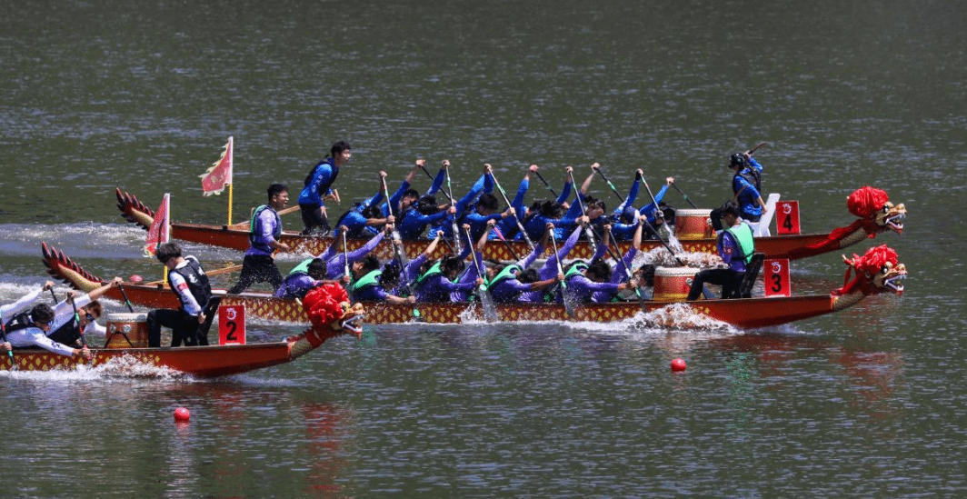 比赛现场,随着发令声响起,伴随着激昂的鼓点,各高校参赛选手劈波斩浪、奋勇争先,比赛现场船桨翻飞、浪花阵阵,岸边观众喝彩齐鸣,共同感受水上的速度与激情和龙舟文化的魅力。