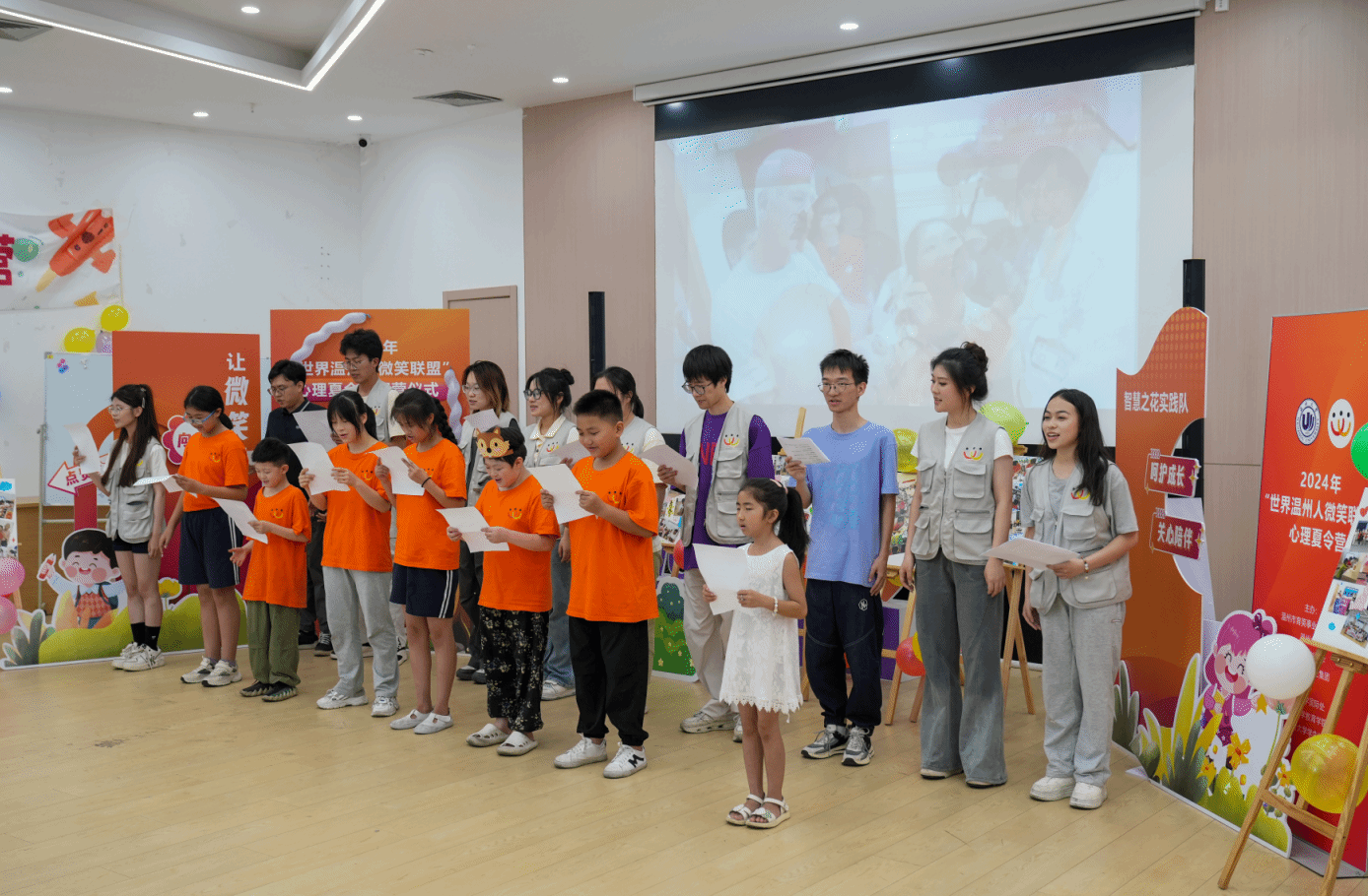 7月14日,2024年“世界温州人微笑联盟”心理辅导夏令营在银河 幸福工坊营举行闭营仪式。7位接受过“微笑联盟”手术救助的孩子,在银河 教师教育学院心理老师和专业大学生志愿者的辅导下,度过了“打开心扉”的一周。