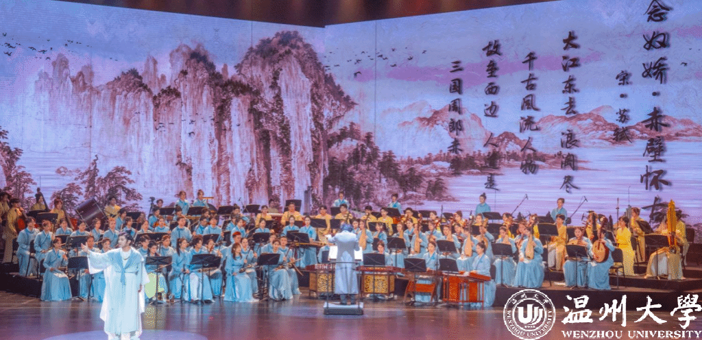《千年宋韵·海丝寻音》是一部深度挖掘与传承温州乃至中国宋代文化精髓,并巧妙融合海上丝绸之路沿线多元音乐元素的创新之作。该作品通过民族管弦乐的独特韵味,生动再现了宋代温州的繁荣景象与海上丝绸之路的壮阔历程,将历史的深度与音乐的灵动完美交融,为观众展开了一幅幅跨越时空的文化画卷。