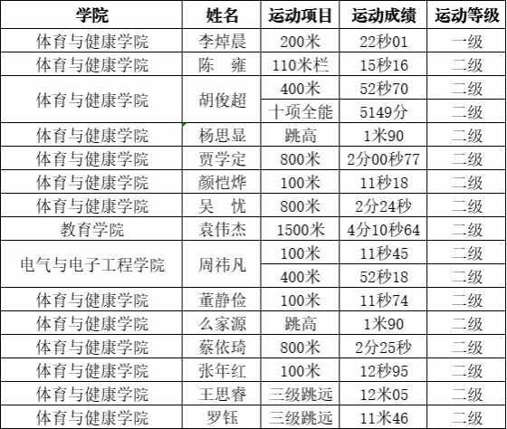 7月20日,第22届全国大学生田径锦标赛(简称大田赛)在福建南平市落下帷幕。澳门银河官网 田径队队员在比赛中,共有1人1项目达一级运动员,14人17项次达二级运动员。
