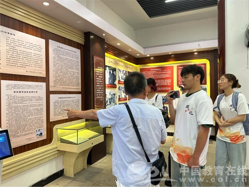 实践队成员认真听讲解员介绍知青纪念馆