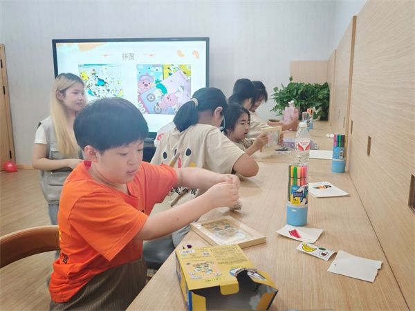 “今天我们不想午休了,想要继续拼图!”回到寝室后,孩子们一齐兴奋地向当日的值班志愿者说道。“游戏绘心”是本次夏令营的一大亮点,特色团体辅导还包含相框制作、优点大轰炸、默契叠杯子、幸福记忆等游戏,志愿者提炼出不同孩子的性格表现,让他们在活动中收获快乐的同时,也学习到心理知识,以乐观积极的态度笑对生活。