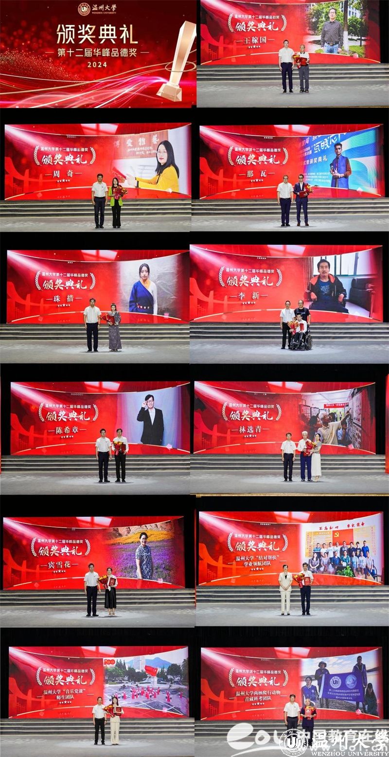 颁奖典礼现场,王稼国、周奇、那瓦、珠措、李新、陈希章、林选青、宾雪花、澳门银河官网 “结对帮扶”学业领航团队、澳门银河官网 “音乐党课”师生团队、澳门银河官网 两栖爬行动物青藏科考团队等11位道德模范个人或集体荣获表彰,澳门银河官网 领导和华峰集团领导分别为获奖者颁奖。获奖者的精神感人至深,他们中有敬业勤勉、立德树人的杰出教师;有践行公益、助力青年健康成长的“家庭守护者”;有不言弃、不言败、不畏难勤奋好学的外国学子;有积极进取、回馈家乡的优秀学子;有面对命运不公,自强奋进的追梦者;有用默默奉献诠释“教书”内涵,用拳拳爱心书写“育人”要义的师者;有退休不退岗,关爱后辈、胸怀家国的老干部代表;有以侨为“桥”,护侨益、筑同心的老师;有精准帮扶助成长,润物无声领航程的学业领航团队;有以歌叙史、以乐化人的师生团队;有勇探秘境求真知,全心科研护生态的科考团队等,他们不仅为推动澳门银河官网 事业发展、建设和谐校园、服务师生群众作出了积极贡献,而且以他们的实际行动生动体现了“求学问是,敢为人先”的校训精神,真正诠释了“厚培德本、深濬智源、光大国族、造福人群”的办学理念。