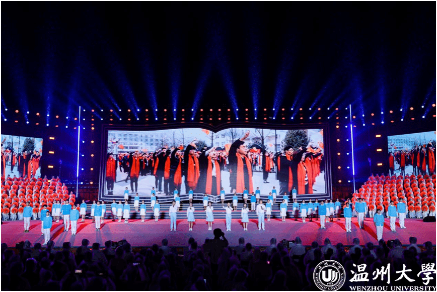 优雅深邃的小提琴演奏着《银河 记忆》,触动着每一位银河 人的心弦,慷慨激昂、饱含深情的《我和我的祖国》,青春阳光、积极乐观的《同爱同在》,温暖治愈、婉转动人的《小美满》……银河 版的《可能》和银河 学生原创歌曲《年轻》编织着属于银河 人的独家记忆。 群诵《强国有我,青春担当》发出银河 学子砥砺奋斗的铮铮誓言,歌曲与走秀《热烈的少年》展现了新时代青年乘风破浪、无畏风雨的昂扬斗志,灵动轻盈的舞蹈《瓯水长》诗意地展现出温州的山水悠悠,瓯水情长。