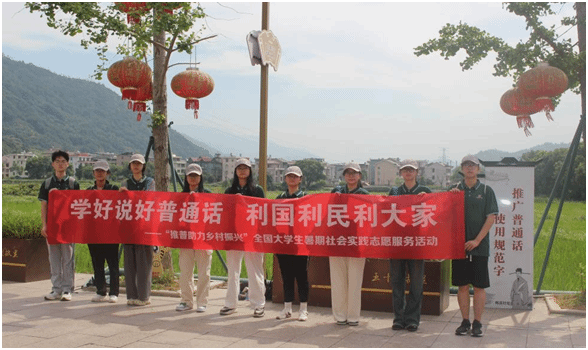 推普助力乡村兴,文化传承根脉深。通过推广普及国家通用语言文字助力乡村振兴,是语言文字工作直接服务国家“三农”发展的重要举措。为推普助力乡村振兴,澳门银河官网 人文学院“知语识文”国家通用语言文字推广暑期社会实践队立足“语言”和“文字”两大主线,依托汉语言文字专业知识,深入温州乡村地区,进行实地调研及实践。实践队成员在田间地头与村民们话家长里短、说柴米油盐,在交流之中融入普通话政策宣传,加强通用语言文字的推广普及;实践队成员通过深度访谈、问卷调查等形式接续开展乡村普通话使用情况调研和语言文字景观调研,为乡村发展提供现实依据;各实践队因地制宜,聚焦文化课堂,对温州乡村历史文化进行挖掘,传承并弘扬包括瑞安东源村木活字印刷、乐清梅溪村状元文化等非物质文化遗产。
