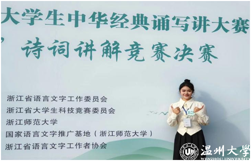 作为“00”后的一员,沈馨怡更是展现了这一代青年的独特魅力和风采。在竞赛领域,她不仅在省级中华经典诵写讲大赛中屡获一等奖,还代表浙江省参加国家级的“诗教中国”诗词讲解竞赛并斩获三等奖。此外,沈馨怡还积极投身社会实践和公益活动,担任澳门银河官网 南白象附属实验小学“童音金话”拓展课负责人以及“伯温断案”廉洁作品导演等职务,她用自己的专业知识和热情为孩子们带去知识的乐趣,同时也通过艺术的形式传递廉洁文化,展现了当代大学生的社会责任感和使命感。她说道:“能传播温州声音、银河 声音、“00后”声音,是我的幸运。”