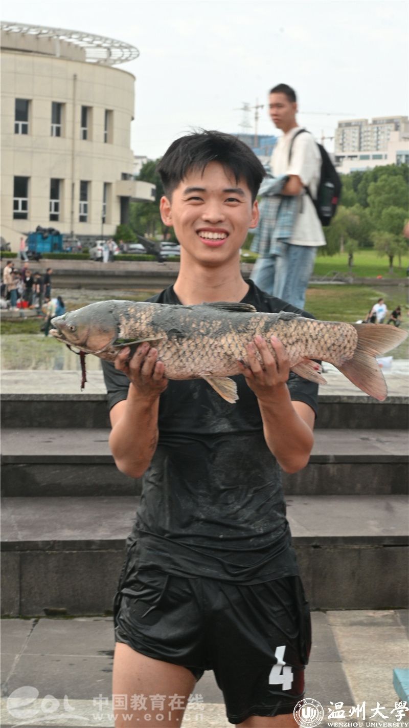 此次捕鱼节捕获总重近200斤,单条鱼最重达6斤。“这次捕鱼节活动真尽兴啊!在湖里捞鱼的时候,一条大鱼径直从我面前跳出水面,我们团队立刻围成一个圆,我以迅雷不及掩耳之势下手,成功抓到了这条鱼。”
