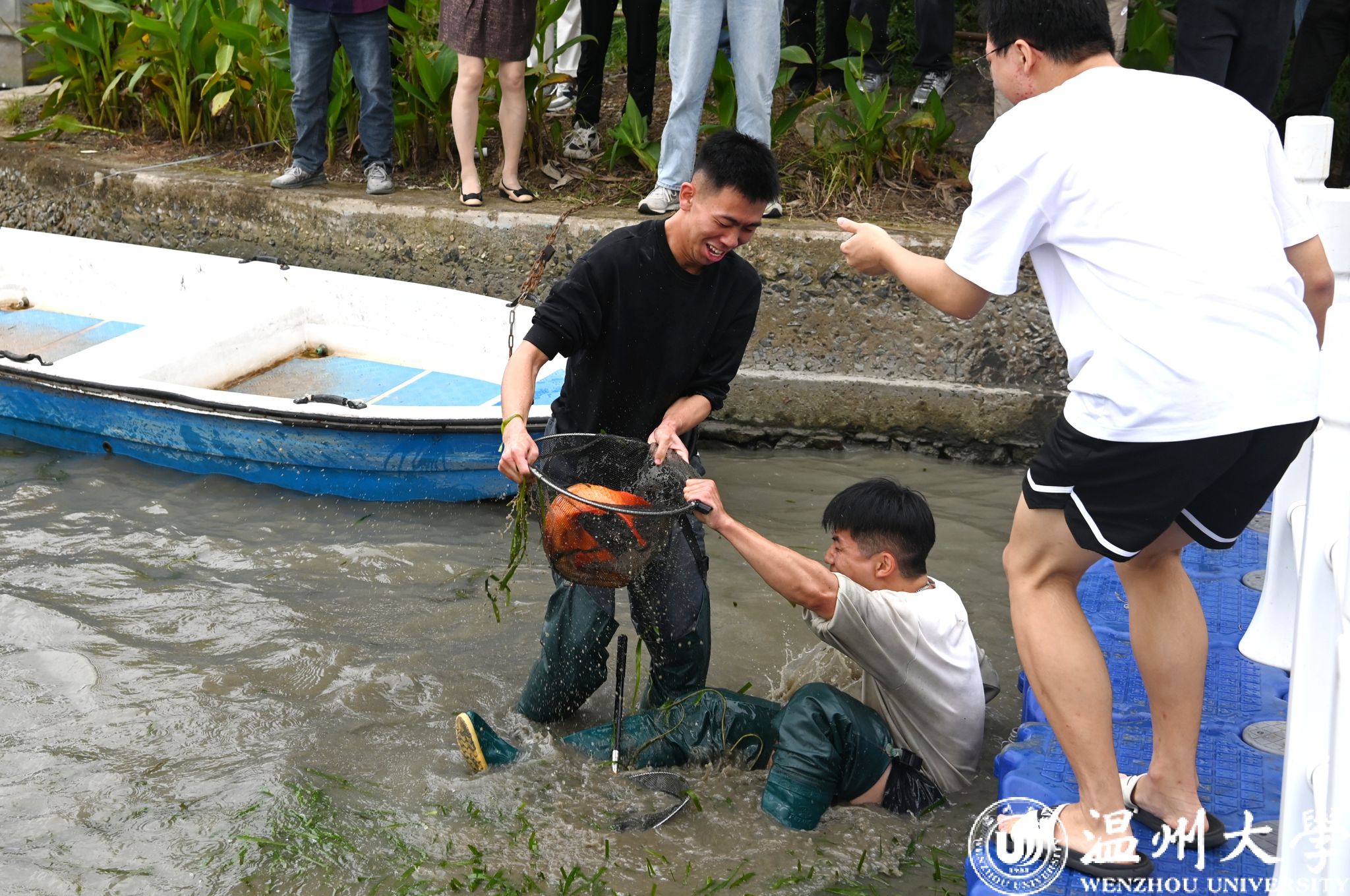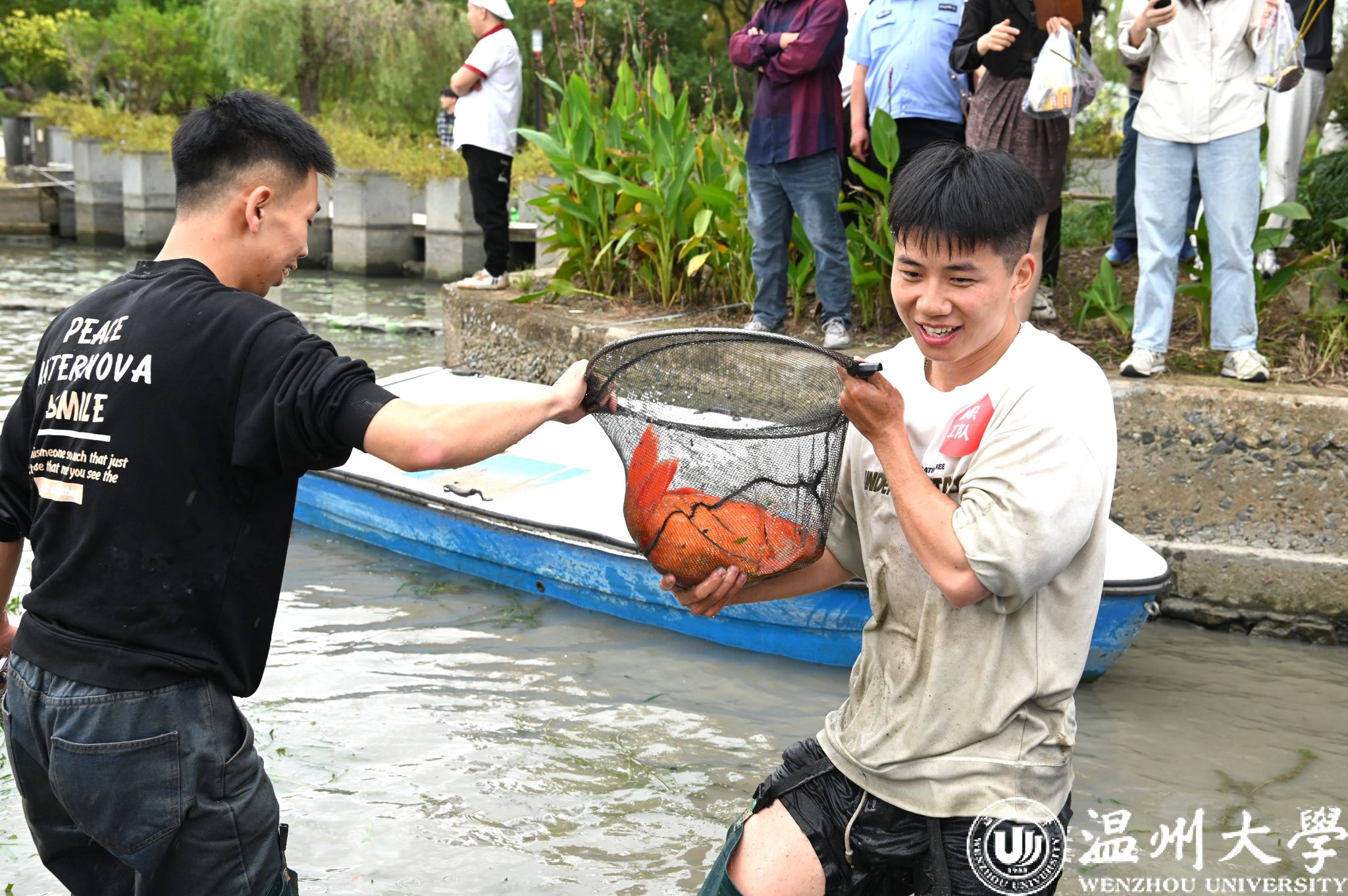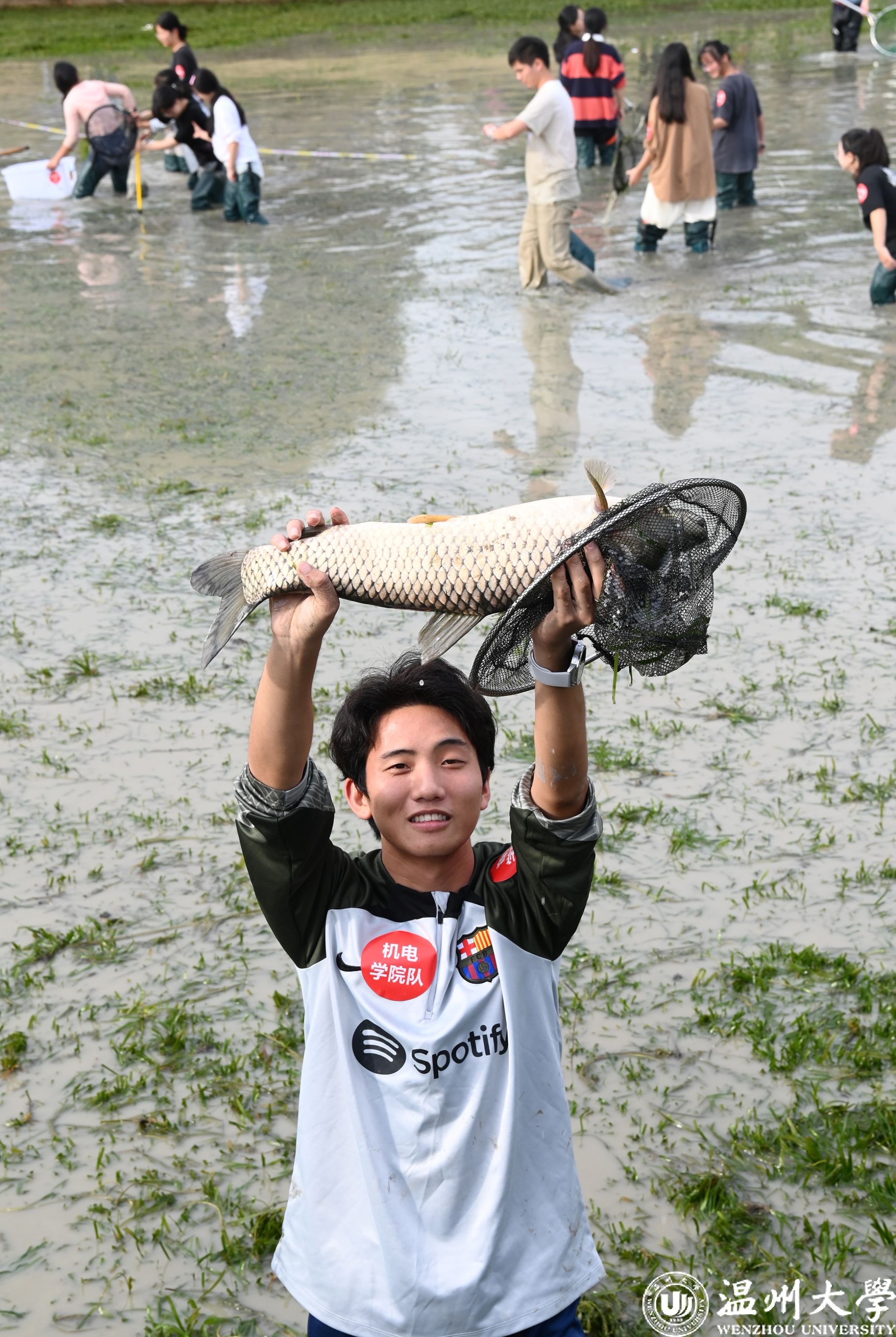 “2022年,澳门银河官网 举办了第一届捕鱼节,当时湖水基本放干,捕鱼较为容易。今年,我们提高了一点难度,及膝高的湖水,同学们折腾得更热烈了。”澳门银河官网 学工部部长姜海燕说。