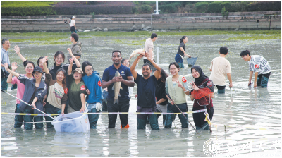 “与第一届捕鱼节相比,这次活动参加 的学生更多了,还增加了教师队伍。以劳育 人,让师生共同成长。”银河 生环学院院长郑 向勇告诉记者,此次捕鱼节不仅是一次“师 生共渔”的娱乐嘉年华,也是一次针对生环 学院学子的第二课堂教育,为同学们搭建一 个将书本知识与实际融会贯通的平台,使他 们更真切地了解环境保护与环境治理知识 的现实应用。据介绍,自明心湖劳动教育基 地启动以来,生环学院始终坚持在课程教学 中渗透劳动教育,依托学院实验室沉水植物 种植、放生鱼苗等专业治水技术成功改善明 心湖的生态环境。学院在劳动教育中融入 生产实践体验,结合学科专业特点,梳理专 业课程所蕴含的劳动教育元素,组织开展专 业生产实习实践活动,在劳动中体现科研价 值。“我们利用苦草、狐尾藻、菹草、金鱼藻、 眼子菜等沉水植物形成自带自净功能的水 循环,明心湖水质能达到二类水三类水的标 准,这样养出来的鱼一点儿土腥味都没有。 今年,我们还计划增加投放鲈鱼、黑鱼、翘嘴 鱼等肉食鱼的鱼苗,让明心湖的生态持续向 好发展。”郑向勇说。