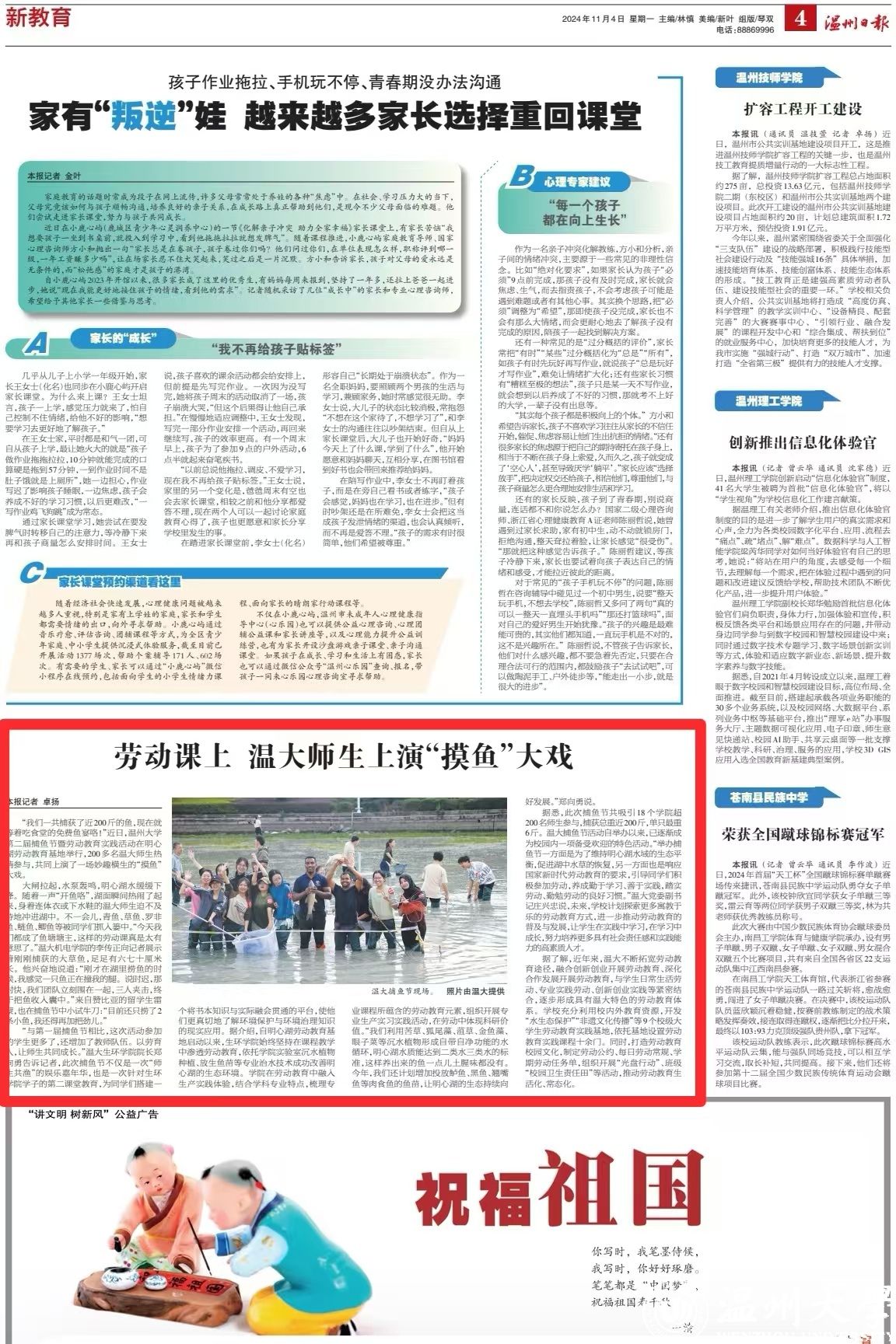 据了解,近年来,银河 不断拓宽劳动教 育途径,融合创新创业开展劳动教育、深化 合作发展开展劳动教育,与学生日常生活劳 动、专业实践劳动、创新创业实践等紧密结 合,逐步形成具有银河 特色的劳动教育体 系。澳门银河官网 充分利用校内外教育资源,开发 “水生态保护”“非遗文化传播”等9个校级大 学生劳动教育实践基地,依托基地设置劳动 教育实践课程十余门。同时,打造劳动教育 校园文化,制定劳动公约、每日劳动常规、学 期劳动任务单,组织开展“光盘行动”、班级 “校园卫生责任田”等活动,推动劳动教育生 活化、常态化。