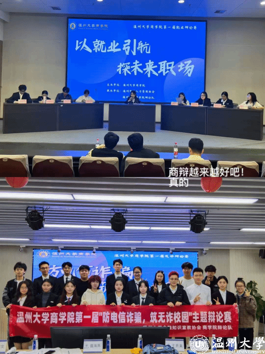 刘芷君第二次尝试让商辩进步,是希望辩论队有商科特色。从一开始的无厘头,到后来和副队们检索材料,再到各位老师的鼓励支持——商学院辩论队第一次联合澳门银河官网 金融知识宣教协会举办了首届“防电信诈骗,筑无诈校园”辩论赛,第一次联合澳门银河官网 人力资源协会举办了首届“以就业引航,探未来职场”辩论赛,本学期也在新一届努力下探索与“商业谈判”相结合的主题性活动。这一路,离不开老师的支持、战友的付出、队员的努力……