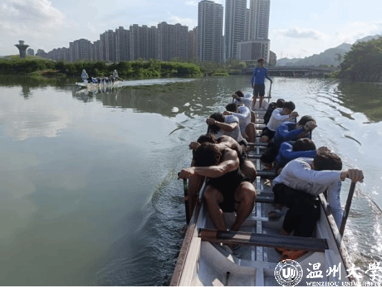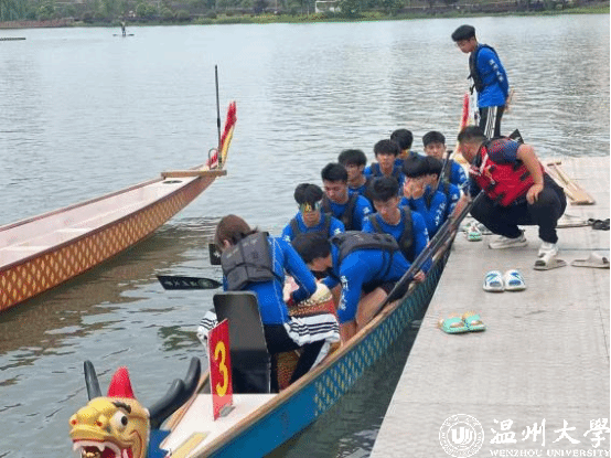 说起严祉豪与龙舟队的缘分,其实不同于他的几位来自瑞安的学长们,他们从小便接触了龙舟文化,在别样的成长环境里继承了瑞安人一贯的对龙舟的热忱。他在上大学前没有实地的体验过或者亲身感受过龙舟文化,而带他走进这个新领域的则是他的班主任,同时也是校水上运动队的教练。当时的时候他们寝室几人在军训结束后不就便一同前去水上运动队开始了较为系统的训练,划龙舟其实在外人看来似乎是挺简单的运动,从始至终就是一个动作,当时的他也是这样以为的,但是恰恰是这种的运动最考验一个人动作的准确性以及体能各方面的能力。他慢慢发现划龙舟其实比他想象的要累很多,再加上身边当初一起来训练的队友们一个个选择了退出,再加上刚上大学的他还是有很大的惰性,对待训练常常是三天打鱼两天晒网。导致他的能力远远落后于其他同学,这些都让他对训练失去了耐心,在他大一的第二学期,他报名参与了澳门银河官网 校庆的彩排,接近两个月没有去训练,等他回来时他已经差了其他队友一大截了。