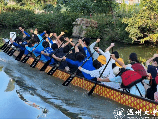 很快在大二的下学期他迎来了自己的第一个完整赛季,他们参加了位于合肥的“长三角中心城市高校龙舟邀请赛”,并且拿下了一等奖,此后他们又赶赴吉林的靖宇县,参加了“2024全国大学生龙舟锦标赛”并拿下了不俗的名次,女生们更是拿下大满贯的荣誉。在两场比赛后他们也没有休息,在这个暑假里也在坚持训练,并以东道主身份参与到温州当地举办的全国青少年龙舟锦标赛中。在这个赛季他几乎划满了全部比赛,不仅仅是说他为龙舟队贡献了他的力量,更应该说龙舟队给了他施展自己的一个机会。在暑假的备战之余,他们成立了“强城筑梦 龙舟铸魂”银河 暑假实践队,参观了温州龙舟博物馆,跟随着工作人员的讲解慢慢感受龙舟所承载的文化价值与精神力量。他们也作为工作人员帮助开展了专门为银河 教职工子女创办的水上运动公益培训班,培养教职工子女对于水上运动的兴趣,与此同时,他们也当了一回小教练,为要参加u系列的小朋友们提供技术上的指导,在教学的同时也潜移默化地将龙舟文化传承给了更加年轻的下一代。