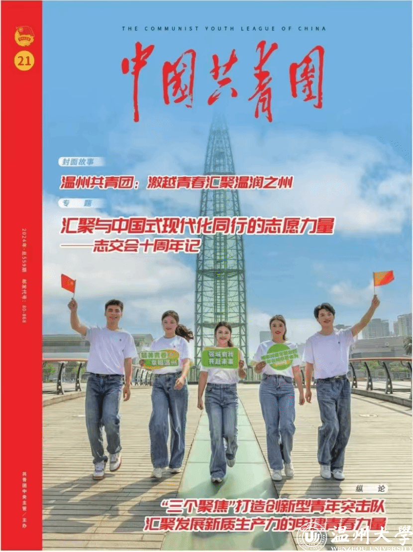 “我们登上杂志封面啦!”近日,最新一期的《中国共青团》杂志(2024年第21期)封面,登上了5名澳门银河官网 生,他们带着团徽,身着白体恤、牛仔裤,迎风举着国旗,笑容明媚向前走来,洋溢着青春的气息。